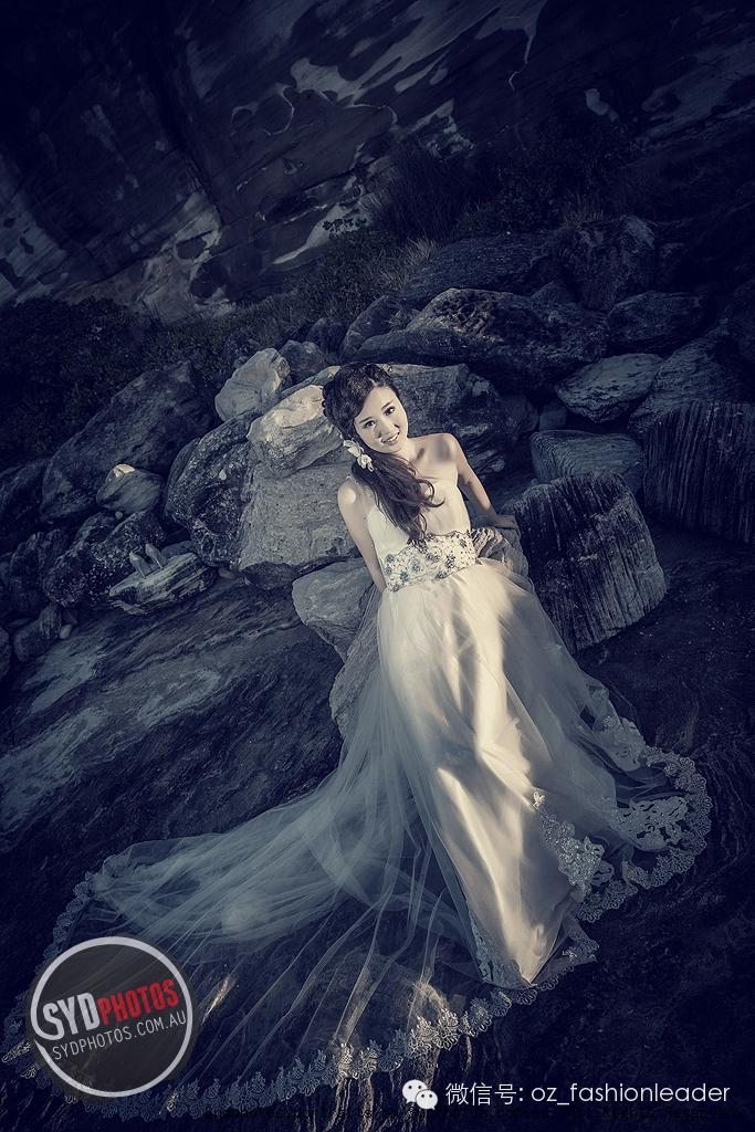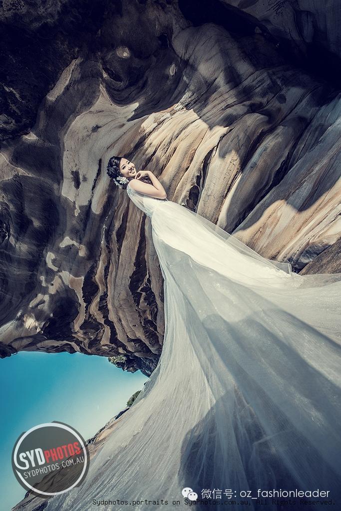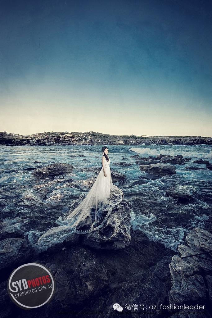 女人如花,似水柔情。在浪琴湾灰褐色的刚毅背景下,更突显得女人的柔美;再加上婚纱的飘逸,让她飘然如仙女。
