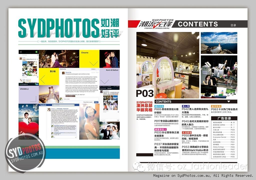 澳洲中文官:http://www.fashionleader.com.au/一本澳大利亚华人而精心设计的高品质时尚生活指南。招商电话:02-96981880email: [email protected]微博帐号:weibo.com/sydphotosmagazine