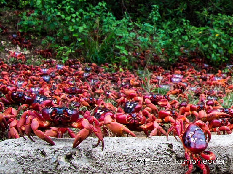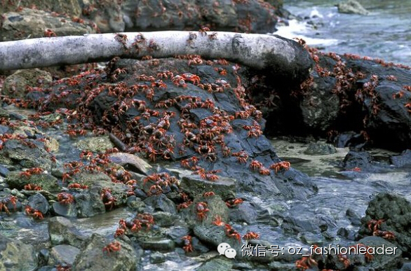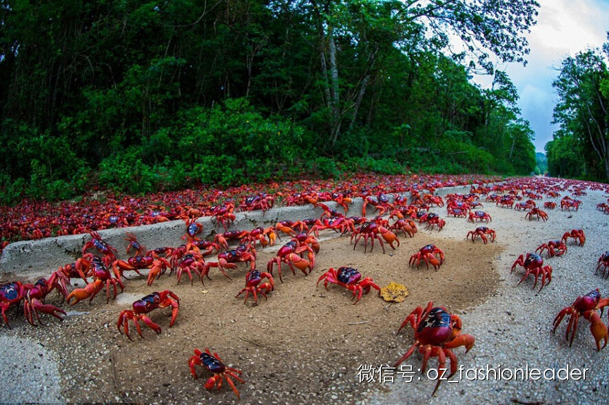 又到了澳洲圣诞岛(Christmas Island)上的红蟹大迁徙的时间。每年10月底到1月初的雨季期间,红蟹们便开始了他们生命中最重要的繁衍工作。这时,他们会离开丛林中的巢穴,迁徙到海边进行交配和产卵。