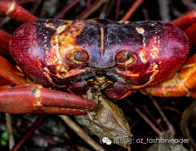 澳洲红蟹主要生活在澳大利亚圣诞岛(ChristmasIsland)上,迁徙的红蟹聚集在海滩上,澳洲红蟹的食物主要是落叶、水果、花和小树苗,它们喜欢新鲜的绿叶,当然食物缺乏时落叶也凑合着能吃啦。
