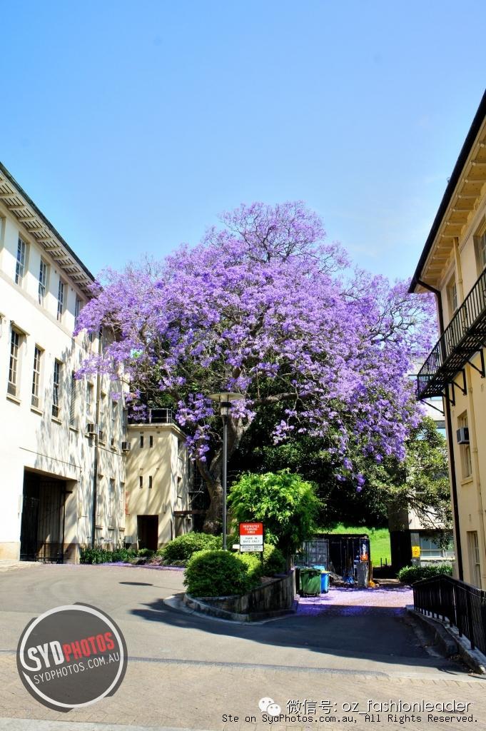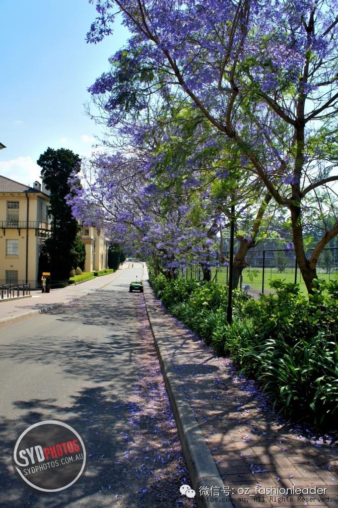 在有些城市里,蓝花楹是作为行道树大量种植的。生长多年的蓝花楹树形高大、枝干茂密,两旁的树冠在空中相接,行人走在蓝花楹大道上,就如同走在一条purple tunnel中,头顶不见天空,只见这蓝紫色的蓝楹花穹顶。