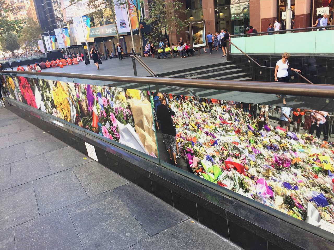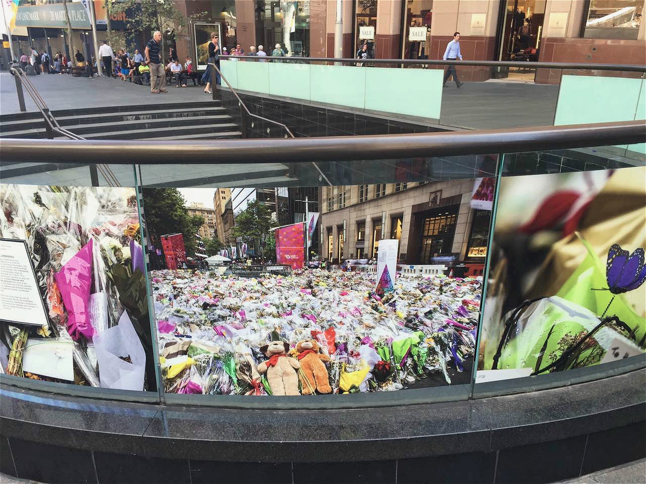 一切和以前没有太多变化,不过,门口多了两个小小的金色牌匾,以悼念在事件中不幸罹难的咖啡馆经理约翰逊(Tori Johnson)以及女律师道森(Katrina Dawson)。在牌匾的下方,已经有民众默默的放了两束鲜花,以表示对他们的思念和追悼。