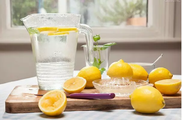 1)一公升的水里加上半粒柠檬原汁,并置於冰箱里,温度较低易有清凉爽口的感觉。
