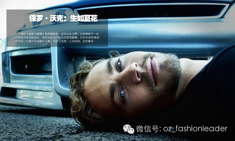 再见,顽童保罗——“户外爱好者,海洋控,玩的就是心跳,偶尔演戏。”是保罗·沃特给自己的定义。让我们永远怀念Paul Walker。