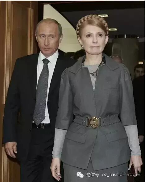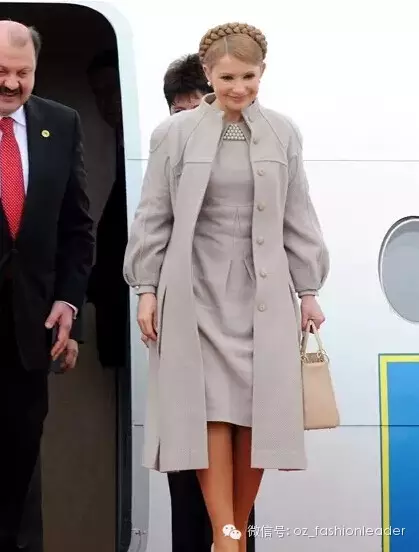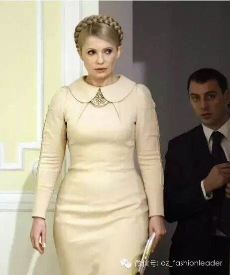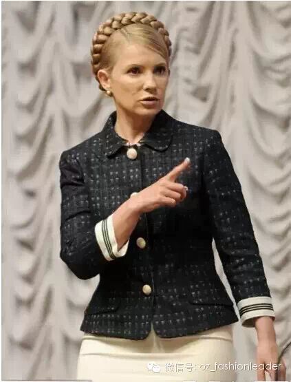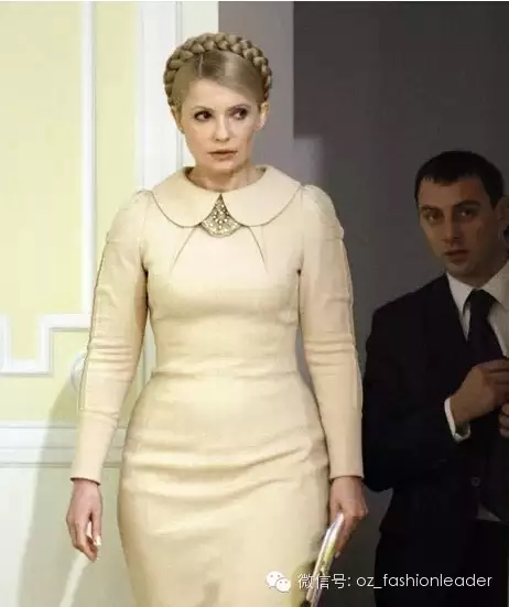 乌克兰前总理季莫申科个性张扬,政治主张强硬,以冷艳决断著称,但她招牌式的盘发,对衣着的重视和讲究众所周知。她爱简洁优雅的时装,也爱令她线条优美的高跟鞋。着装方面她创下一项政坛纪录:从2005年2月正式出任总理以来的不到半年的时间里,在公共场合亮相的服装已超过200套。