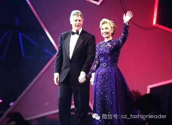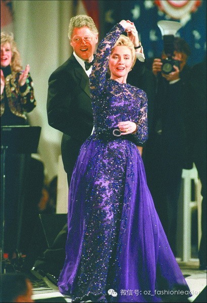 在1993年的总统就职典礼上,希拉里身穿一袭Oscar De La Renta紫色蕾丝及地长裙,现在看来,美艳程度也毫不输女星。
