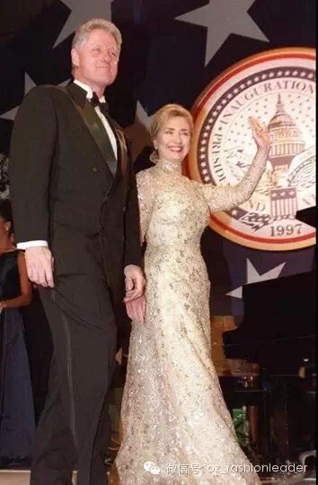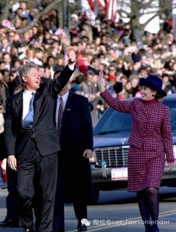 1997年克林顿第二次宣誓就职时,希拉里身穿Oscar De La Renta为她设计的大衣
