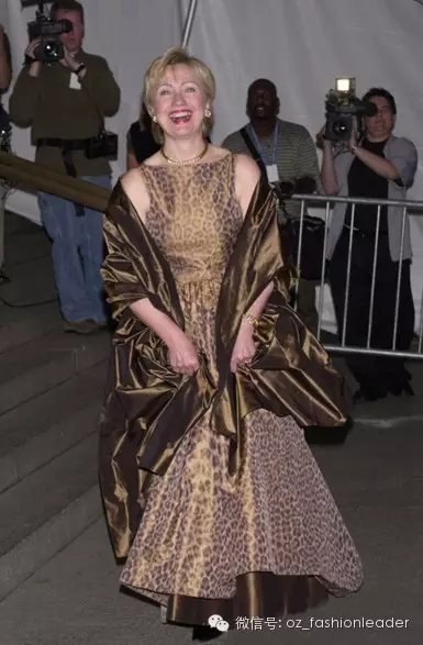2001年4月,希拉里身着Oscar de la Renta豹纹礼服出席纽约时装学院庆典
