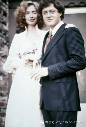 1975年,27岁芳龄的希拉里嫁给克林顿时,身穿了一件灯笼袖加高领设计的白色礼服,略显别扭的设计受到人们的吐槽,有人觉得希拉里看起来更像一个女招待…
