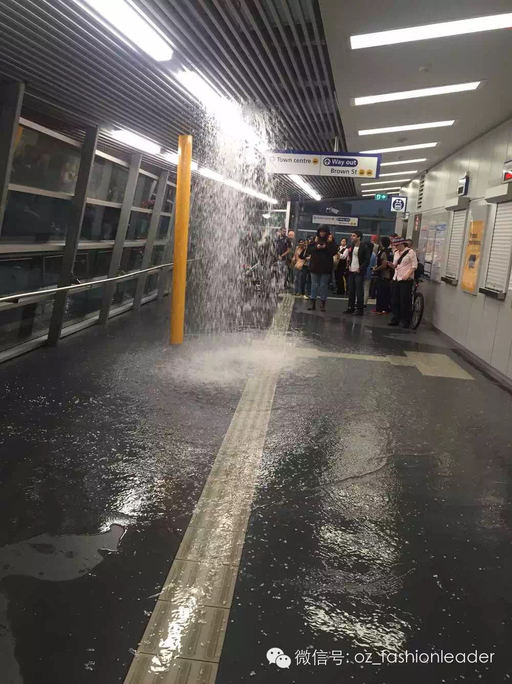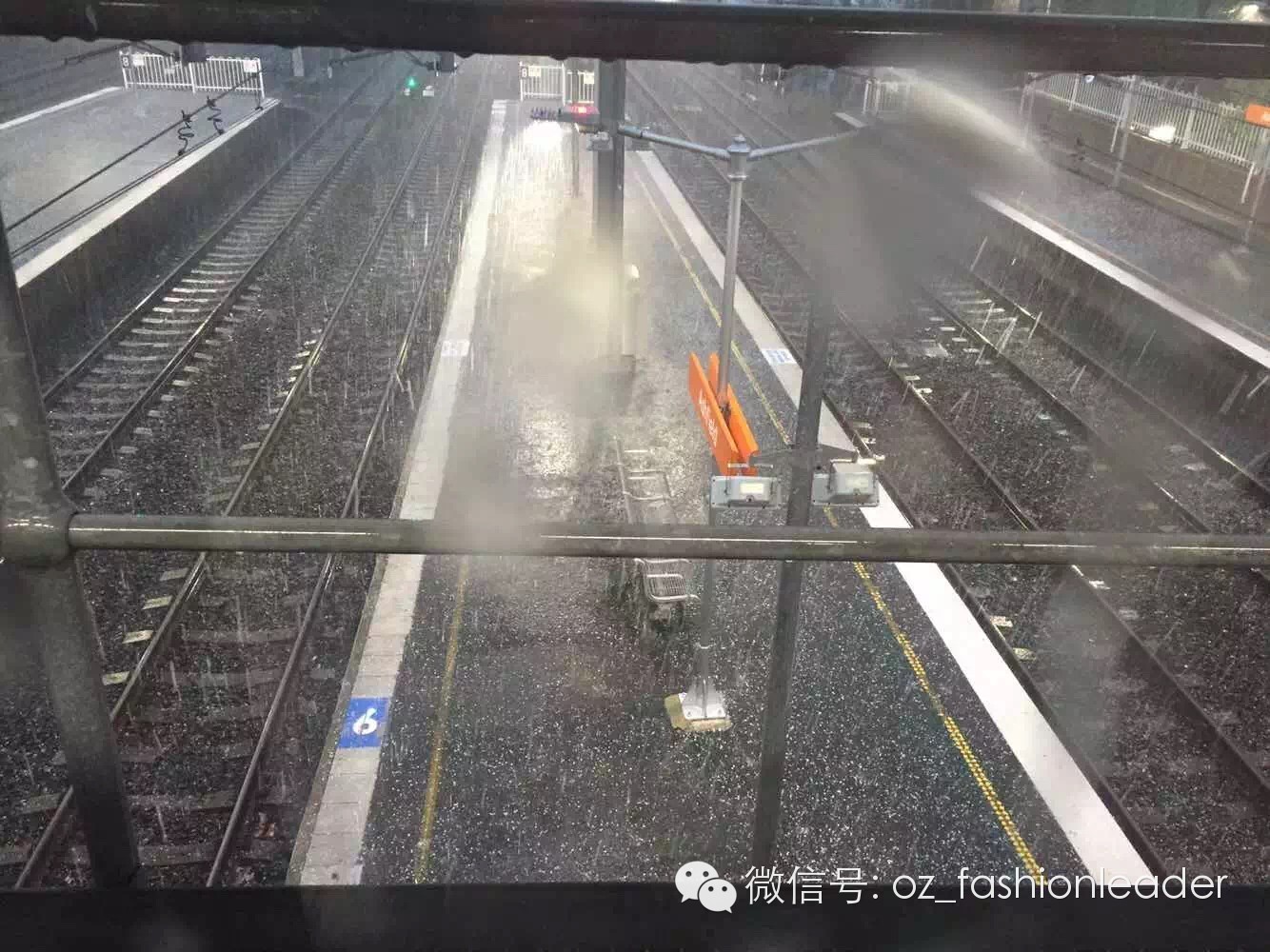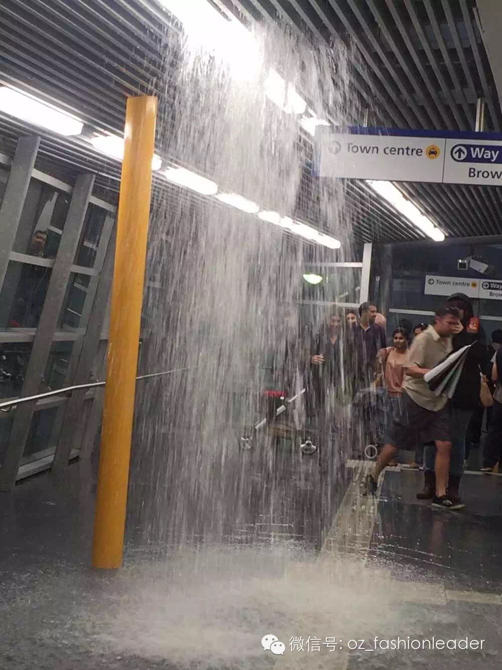 悉尼突降大雨冰雹!然后Ashfield车站的玻璃挡板打破了,从图可见雨水顺势从车站的挡板而下,灾难片的即视感,有木有!