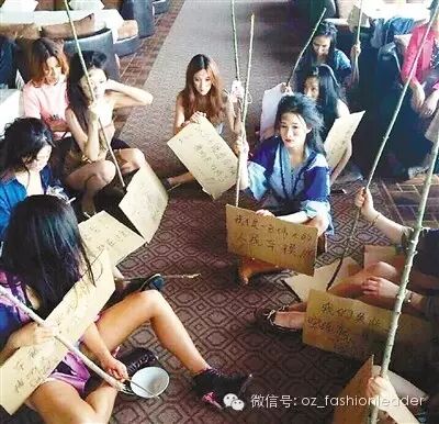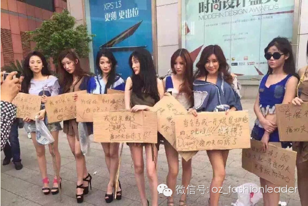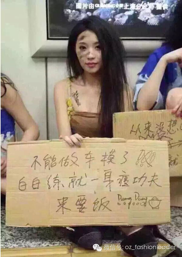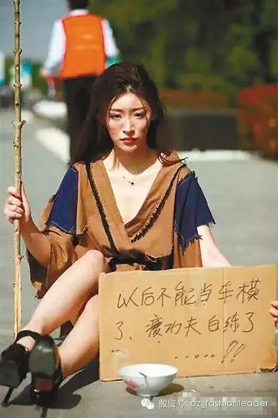 另一边,上海车模们则露着大长腿,脸上涂着灰,装扮成乞丐。