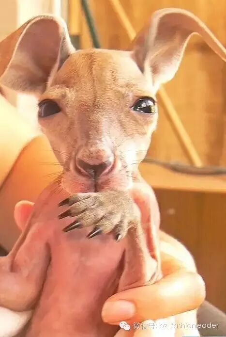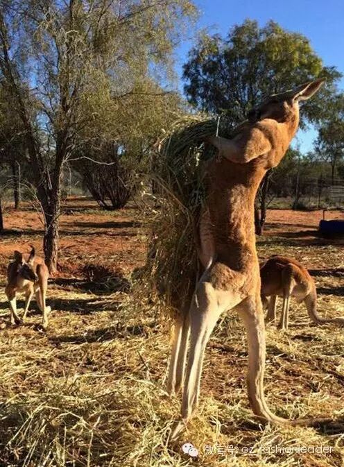 图中的主角袋鼠是澳大利亚北领地(Northern Territory)的艾莉丝·斯普林斯(Alice Springs)袋鼠救助中心的Roger。这个救助中心专门收养孤儿小袋鼠,是Chris Barns成立的,人称“袋鼠奶爸”。
