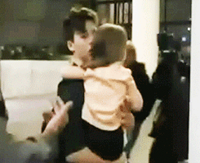 抱着妹妹,感觉自己倍儿拉风!单手抱的姿势简直哥哥力Max啊!