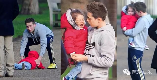 当妹妹真的摔倒时,那可把他急得啊,立马就抱起来哄