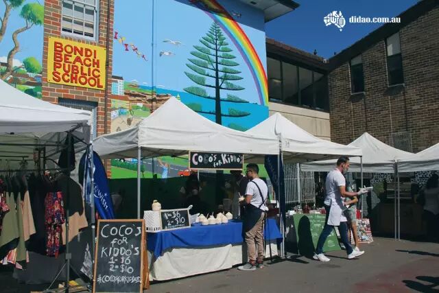 目前的Bondi海滩公共小学校园内,每逢周六举行农夫市场(Bondi Farmers Market),逢周日举行精品集市(Bondi Market)。