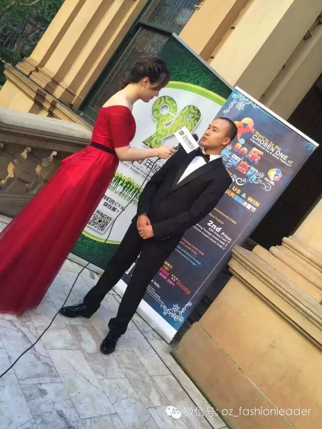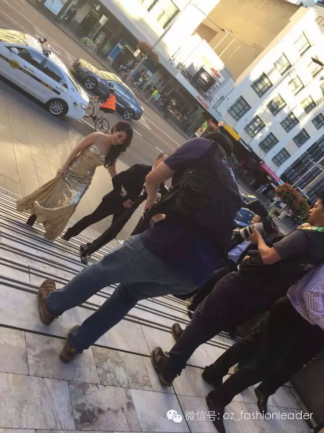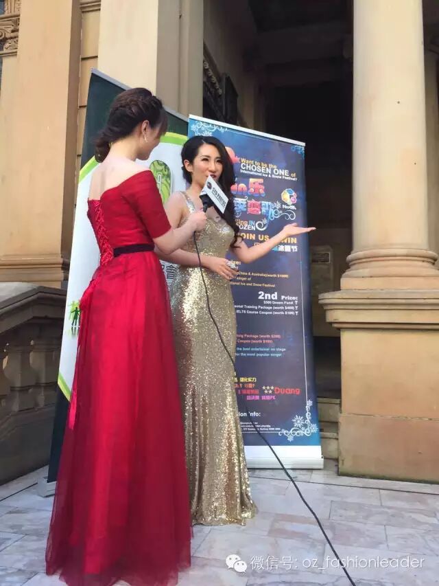 Cecilia穿着SYDPHOTOS 提拱的金色礼服出场美极了