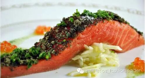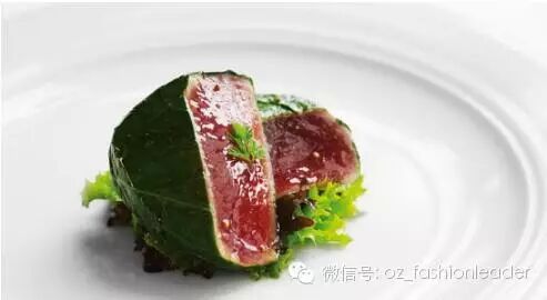悉尼知名餐厅Tetsuya在国际上享有很高的名誉,大厨Tetsuya Wakuda结合日式与法式料理精华,开创出了独家美妙滋味。这道Ocean Trout,成为Tetsuya’s的当家“花旦”已经快20年了。在前几年,大厨想推出新菜,便把这道鱼撤下了菜单,结果遭到众食客抗议,无奈之下只得再次把它放回菜单上,看来这道菜在食客中间真是红得发紫。橄榄油混合葡萄油,在55度低温下将鱼肉烹制25分钟,日式调味很好地衬托出了鱼肉自身的甘美鲜甜,而法式的精致优雅也和谐地融入了其中。新鲜鱼肉搭配以海白菜、萝卜、紫苏、鱼子酱,其细腻滑嫩的口感,就像黄油一样,瞬间在嘴里融化开来,而海带碎清脆的口感又平衡了鱼肉的软绵,在对比中达到了另一种升华。