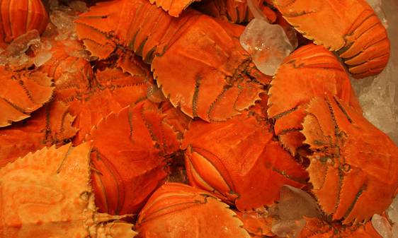 特征:听名字就知道,皇帝蟹,蟹中帝皇!!皇帝蟹都体型巨大,壳也厚,所以很少有人能够在家里烹饪,一般只能在餐馆品尝。
