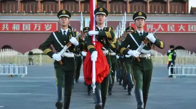 每日清晨,时间一到,天安门广场门口的36位国旗班士兵,