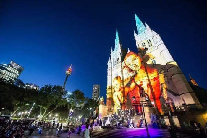 从12月8日晚上开始,悉尼最大最华丽的圣玛丽大教堂(St Mary’s Cathedral)就要变身巨大的魔幻城堡啦!Vivid Sydney团队每天晚上都会为悉尼人奉上一场精美绝伦的灯光秀!
